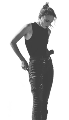 Кожаные куртки, яркий трикотаж, мини-юбки, казаки, дерзкие принты, аксессуары с цепями или металлическими элементами.