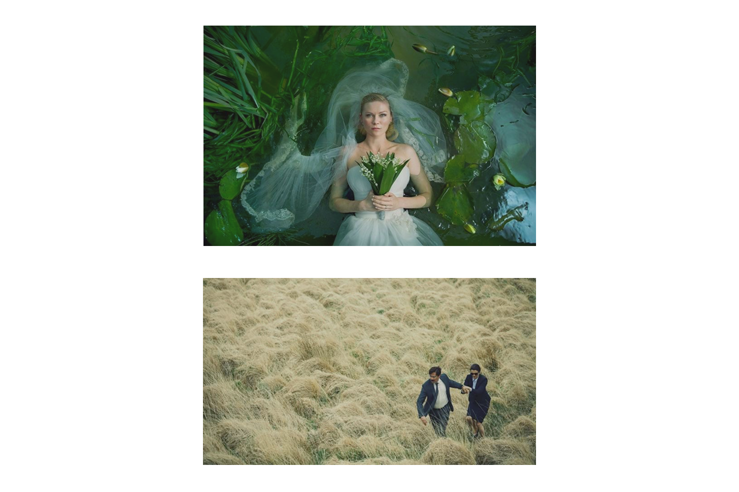 Первая часть фильма полностью посвящена свадьбе. Невеста (Кирстен Данст) приезжает на прием в загородное поместье, организованное ее сестрой и зятем, но постепенно теряет контроль над происходящим: опаздывает, ссорится с близкими, саботирует требования начальника, исчезает с праздника и отдаляется от мужа уже в день свадьбы. Параллельно развивается сюжет с планетой Меланхолия, которая приближается к Земле и становится метафорой внутреннего состояния героини. Фильм получил приз за лучшую женскую роль на Каннском кинофестивале и стал одной из самых обсуждаемых работ режиссера. Визуально он сочетает ручную камеру в сценах свадьбы с медленными, почти живописными прологом и финалом. Свадьба здесь фактически срывается и показывает неспособность героини соответствовать социальной роли невесты на фоне депрессии.