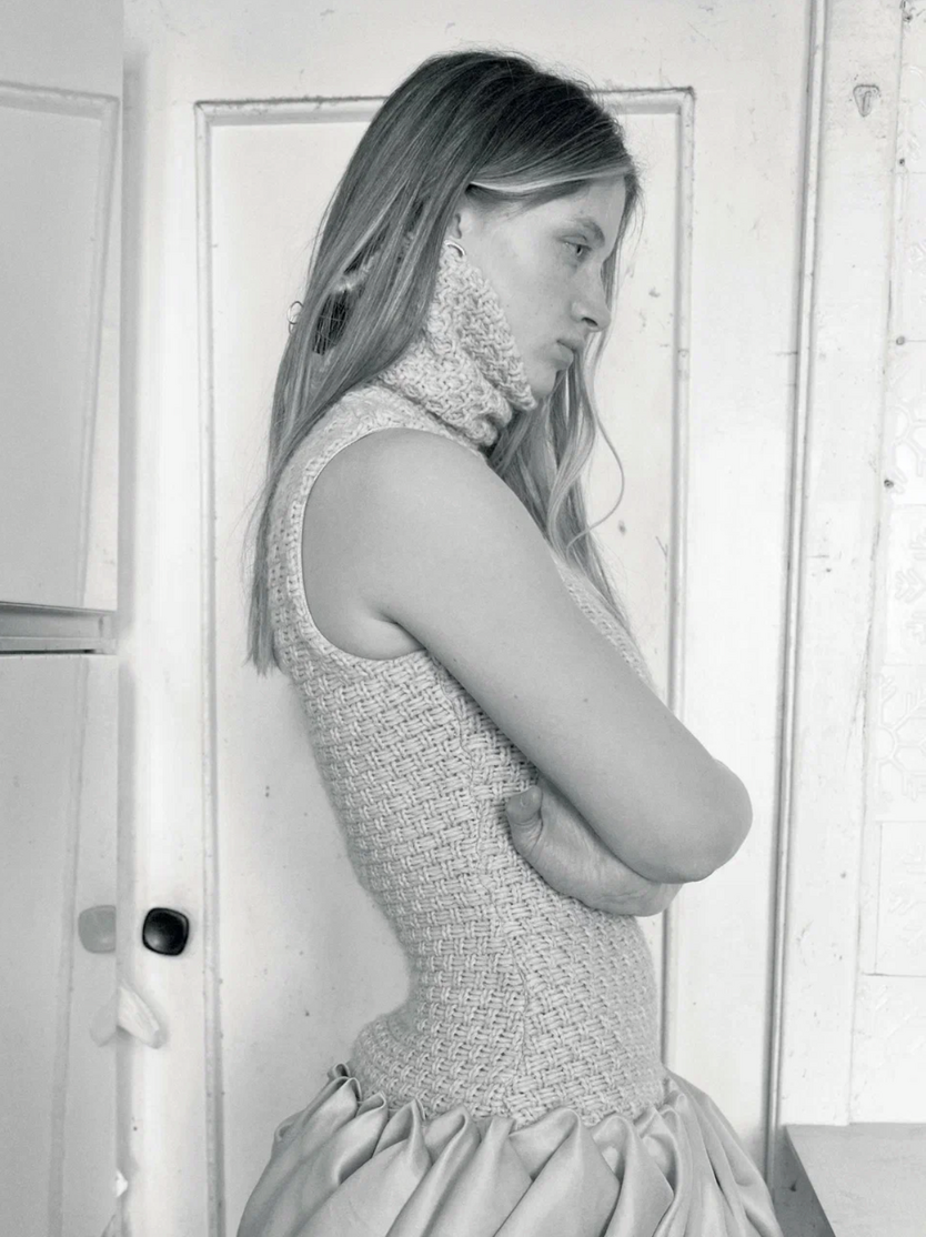 Фотография — удивительный инструмент изучения себя. Сегодня я делюсь с миром самой драгоценной историей, которую когда-либо создавала. Кружевные бабушкины скатерти, бумажные обои, киви в хрустальной вазочке, родные дедушкины глаза и его точеные скулы — острее пиков снежных гор: все в моем пристанище юности как будто осталось нетронутым. Только я вернулась домой с настоящей камерой вместо игрушечной. Эта история о встрече никогда не существовавших вместе миров: детства у родителей мамы в советской квартире и жизни в моей новой обители кутюрных платьев, вспышек и идеальных лиц.