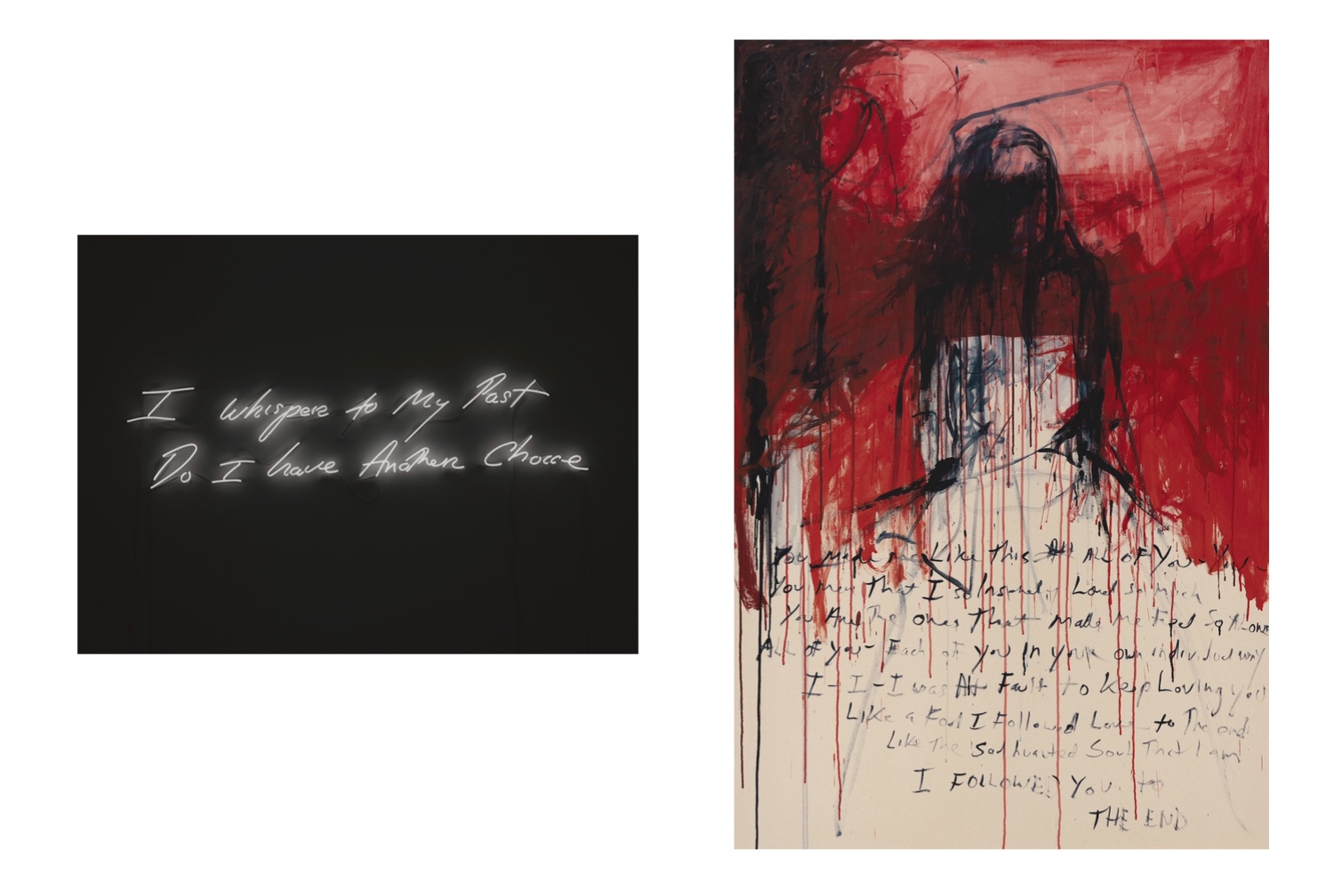 В той части нынешней выставки, которая отвечает за «вторую жизнь» Трейси Эмин, кровати встретятся не раз, но уже на картинах, изображающих женское тело, тонущее в густых разводах и потеках красной краски, взывающее отчаянными репликами. Да, постепенно художница все же вернулась к живописи — ее работы продаются за шестизначные суммы и имеют стабильный спрос у коллекционеров. Она даже стала первой женщиной — профессором рисунка в Королевской академии искусств.