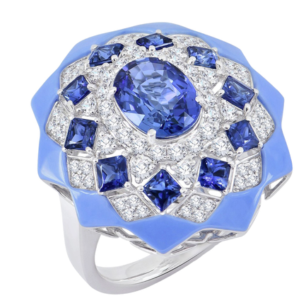 Кольцо, золото, керамика, сапфиры, бриллианты, Sutra Jewels