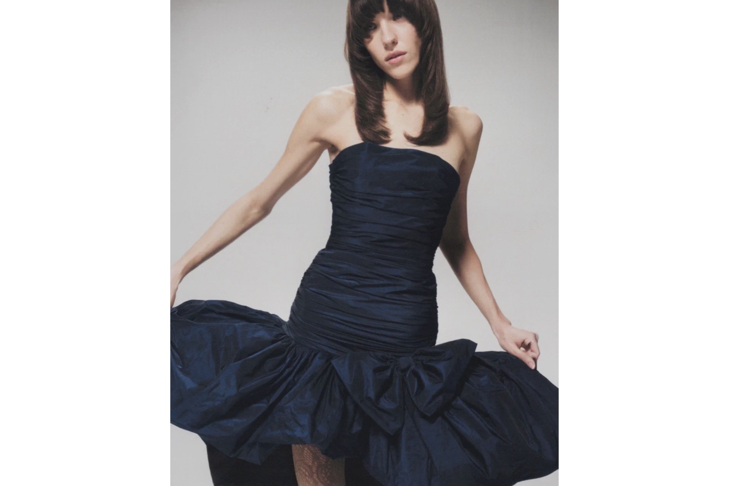 Коллекция Grand soir выросла из желания переосмыслить праздничный гардероб — сделать его торжественным, но не мимолетным. В капсуле использованы выразительные ткани: тройная золотая шелковая органза, мягкое молочное букле, кремовая костюмная шерсть с добавлением шелка, тончайшее черное французское кружево, винный шелковый жоржет с натуральной жатостью, жаккард с «ресничками» из шерсти и шелка, а также теплая пальтовая шерсть с кашемиром оттенка экрю. Каждая ткань задает собственное настроение и подчеркивает благородную сдержанность вещей.