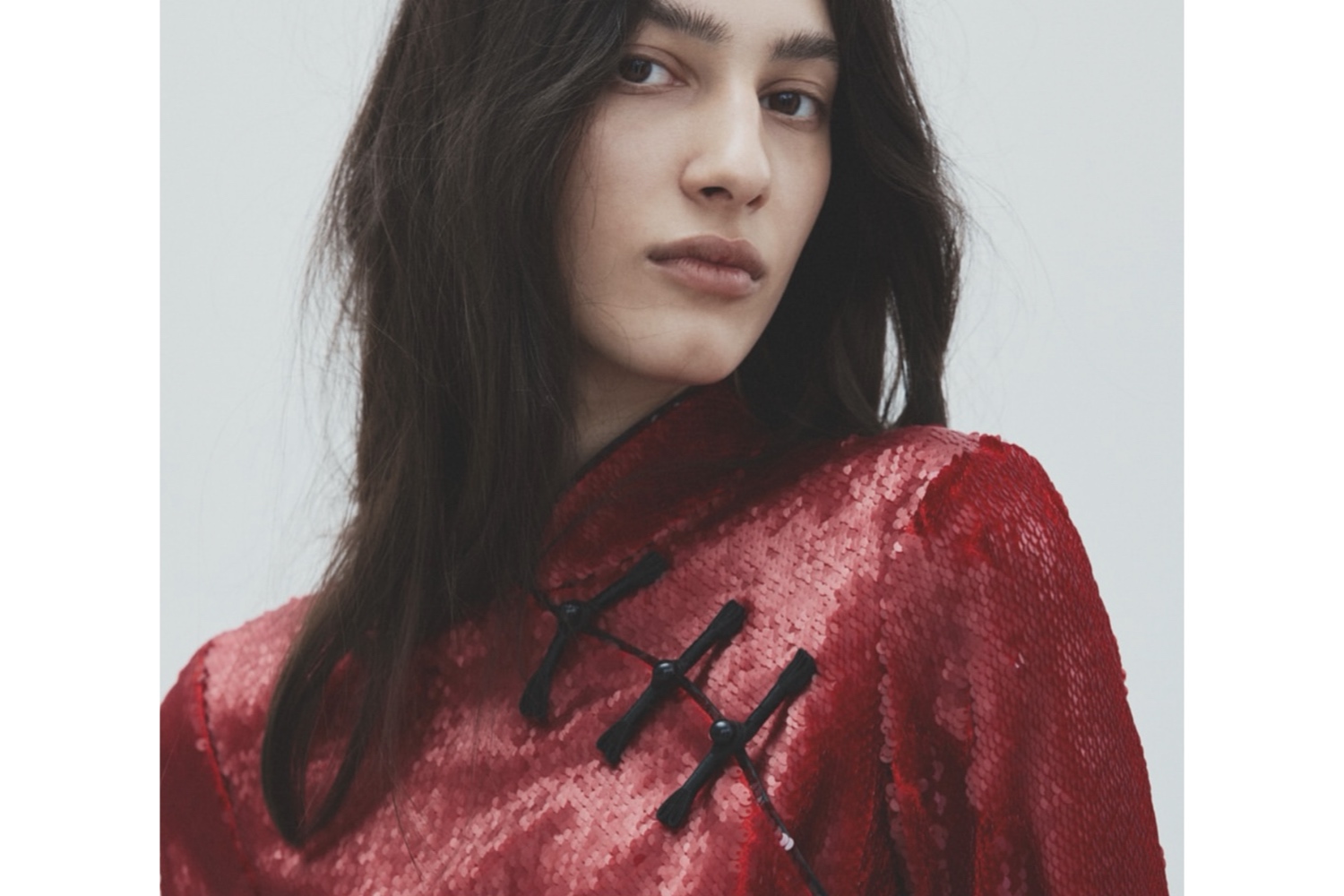 В праздничной коллекции бренда есть образы, тонко отсылающие к азиатской эстетике. В глаза сразу бросается красное платье с японскими плетеными пуговицами ручной работы. На некоторых вещах также присутствует характерный для Азии воротник-стойка.
