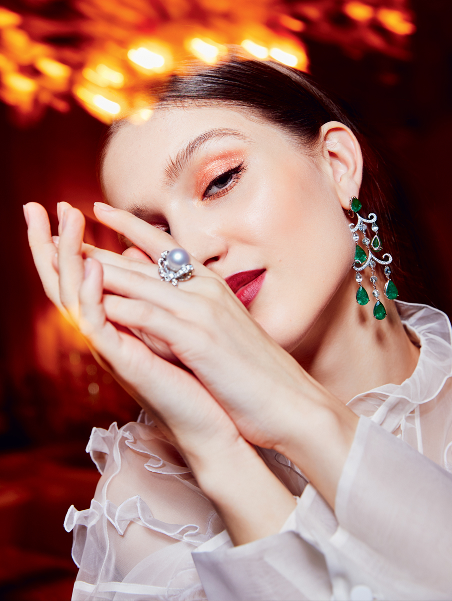 На Валерии (слева): жакет Ralph Lauren; серьги Mercury; кольцо Stephen Webster; кольцо Garrard; колье Mercury.