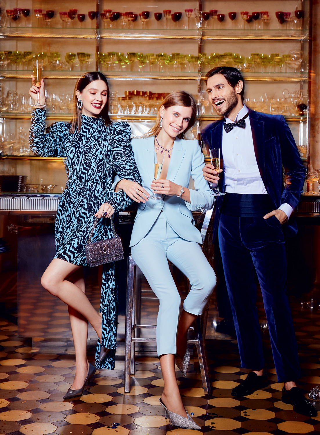 Желания загаданы, игристое плещется в бокалах, в ночном небе разноцветными брызгами взрываются фейерверки — с последним ударом курантов новый год вступает в свои права, а значит, пришло время танцев, поздравлений и веселья до утра. Предлагаем вам два источника вдохновения для поиска запоминающихся образов на новогоднюю вечеринку — нашу праздничную съемку, ослепительную подборку нарядов и ювелирных украшений.