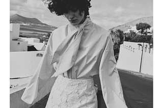 Модель поделилась летним образом из недавней поездки во Францию. На снимках она стоит среди цветов лаванды. Вместо классического платья в стиле prairie dress она выбрала бело-голубой комплект в мелкую клетку, состоящий из укороченного топа с пышными рукавами со сборками и коротких шорт с драпировкой.